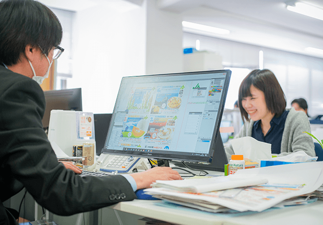 | 内容 | 北海道の「食」を美味しさだけでなく、作り手の「想い」や「こだわり」までを感じ取り、チラシやカタログのデザインを通じて「伝え」「行動してもらう」仕事です。一般的なデザイナーの仕事と大きく異なる点は、「下請けで受注」するのではなく、自らが「発注する側の人間として」主体的に取り組むことができるので、「やりがい」が違います。また、自分が制作した販促物の結果・反応が即リアルにわかるので、スピード感を持って成長していくことが可能です。 |
